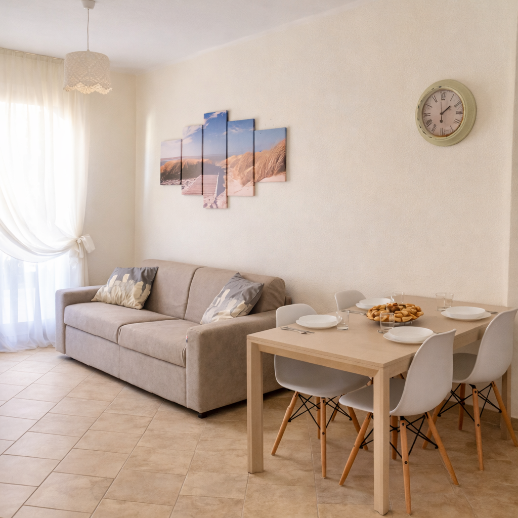 Designed to accommodate up to four people, the accommodation combines modern comforts and a Mediterranean atmosphere, offering everything you need to feel at home even away from home.